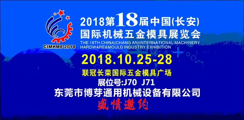 展會名稱:第18屆中國(長安)國際機械五金模具展覽會時間:2018年10月25-28日地點:廣東省東莞市主辦方:廣東亞聯(lián)展覽股份有限公司展會地址:聯(lián)冠長榮國際五金模具廣場備注:18年J70J71...